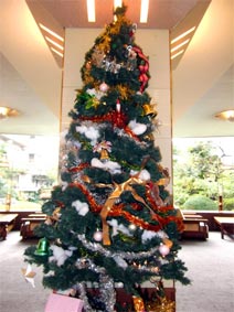 ロビーの一角は、ハロウィンの飾りからクリスマスツリーへと模様替え!