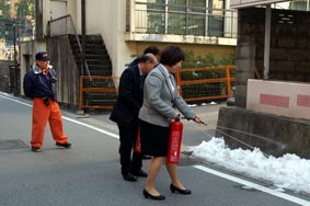 ロビーに集まり、消防署の方から所見を述べて頂きました。