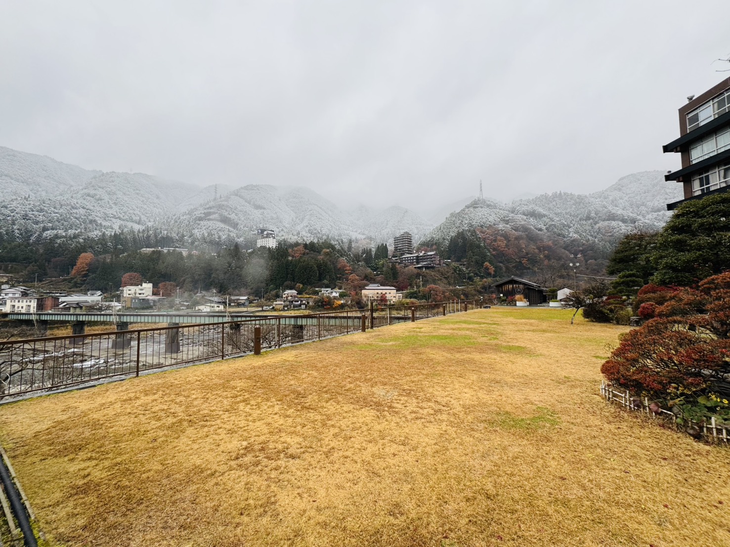 下呂温泉はこんな感じですが、近隣の地区は積もってる箇所もあるかもしれません。