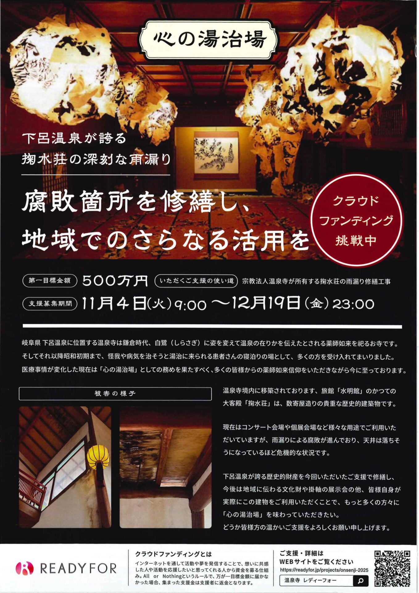 心の湯治場【温泉寺】がクラウドファンティング♪