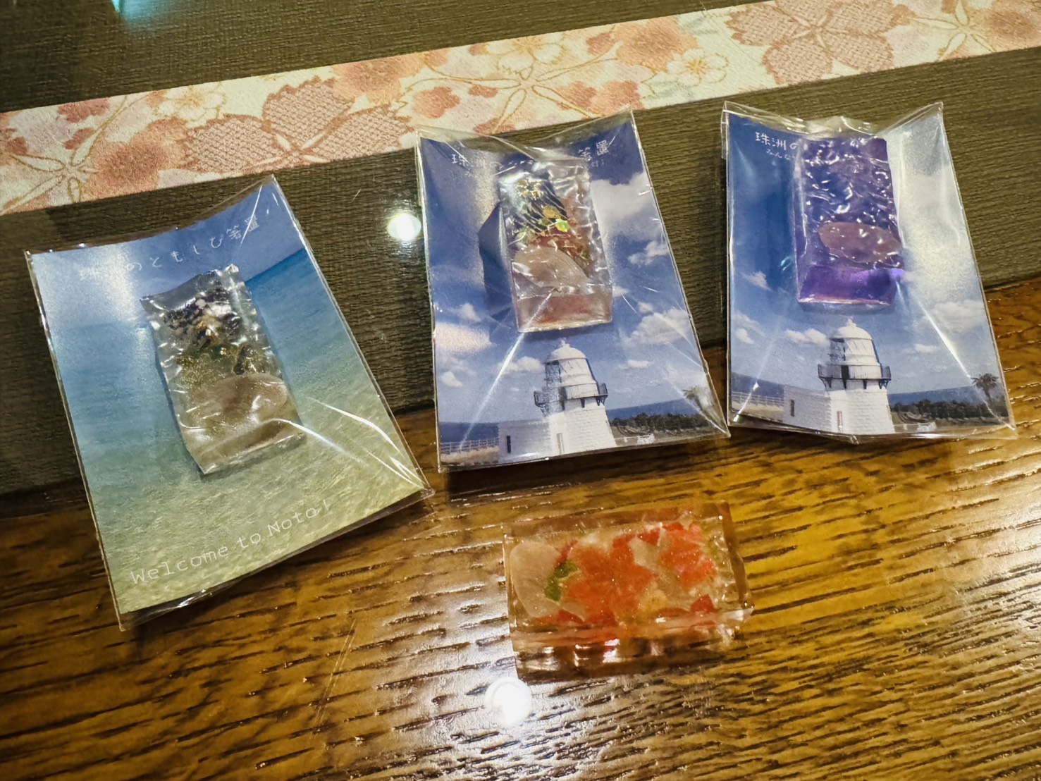 箸置きは珠洲市周辺の海岸で拾った桜貝を樹脂で固めて作る物で、学校から帰ると、毎日15分から 30分は制作をしているそうです。