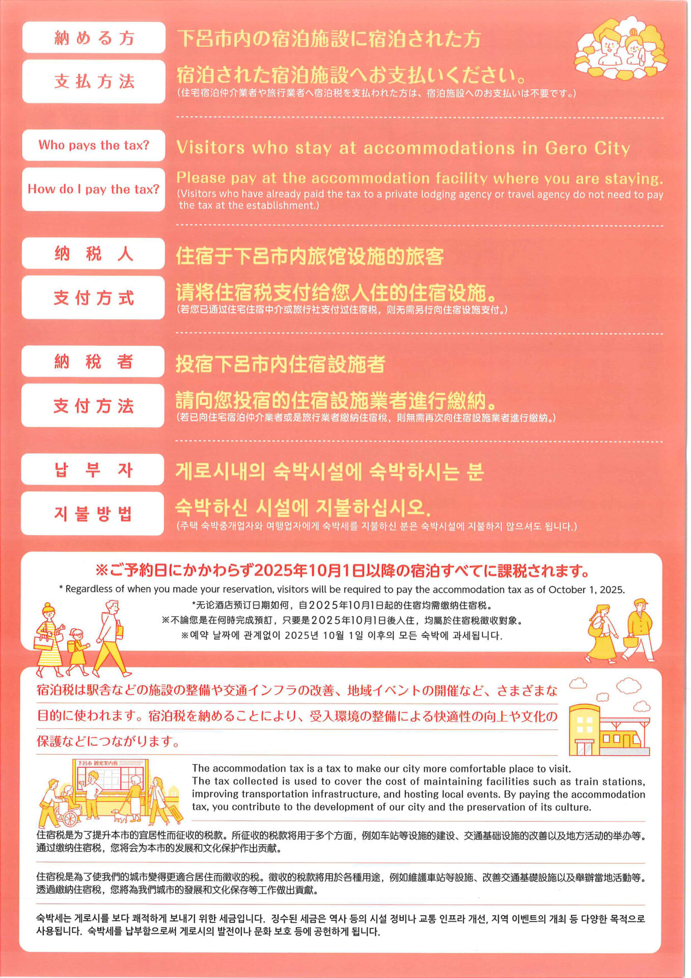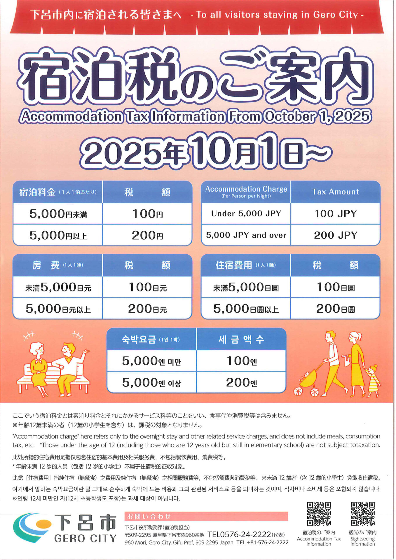 宿泊税で、下呂市の観光への予算として下呂温泉へお越し頂くお客様が楽しく安全に観光できる街づくりに使わせて頂きます!!