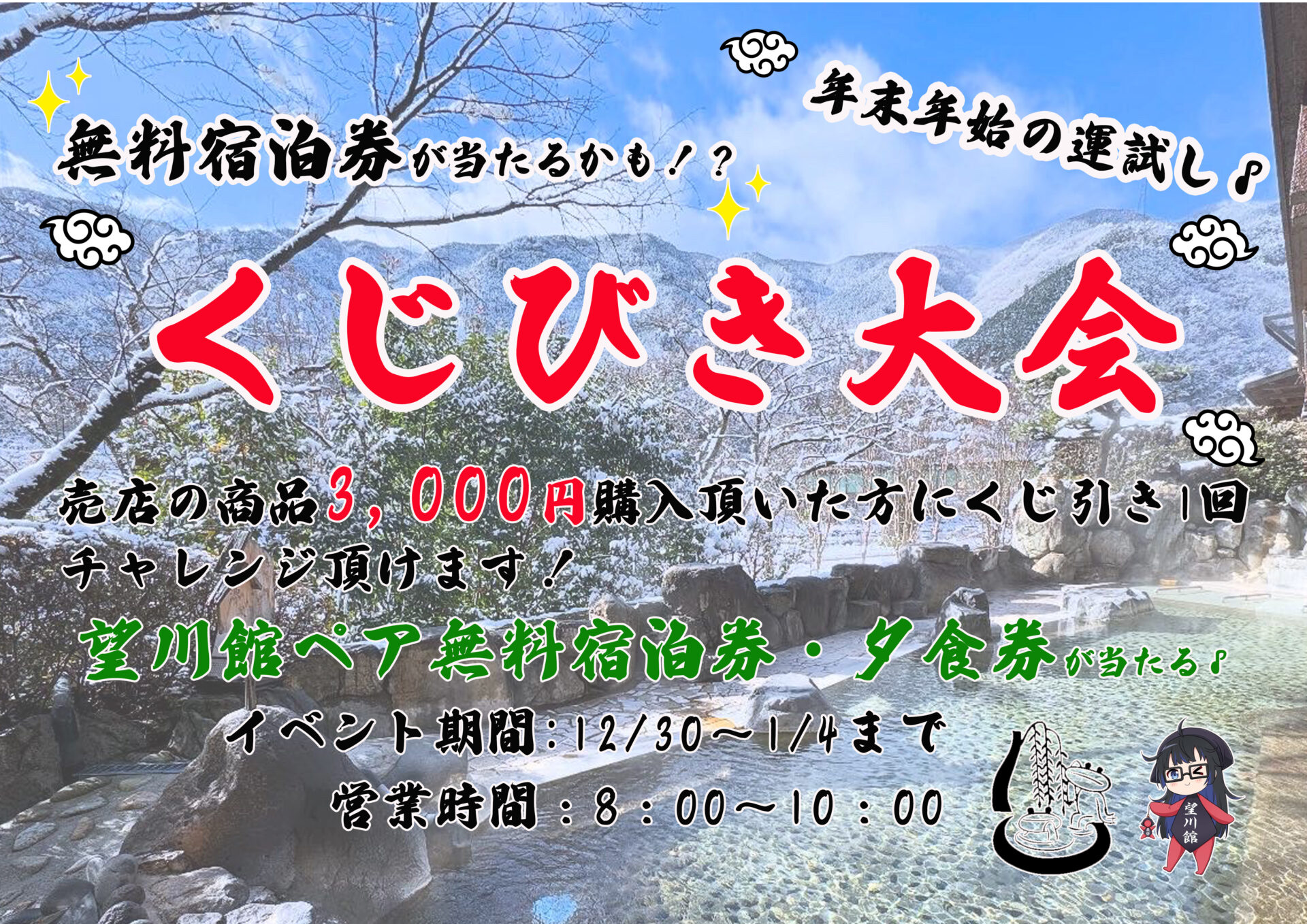 12月30日から始まる望川館イベント!!【無料宿泊券があたるくじ引き大会】