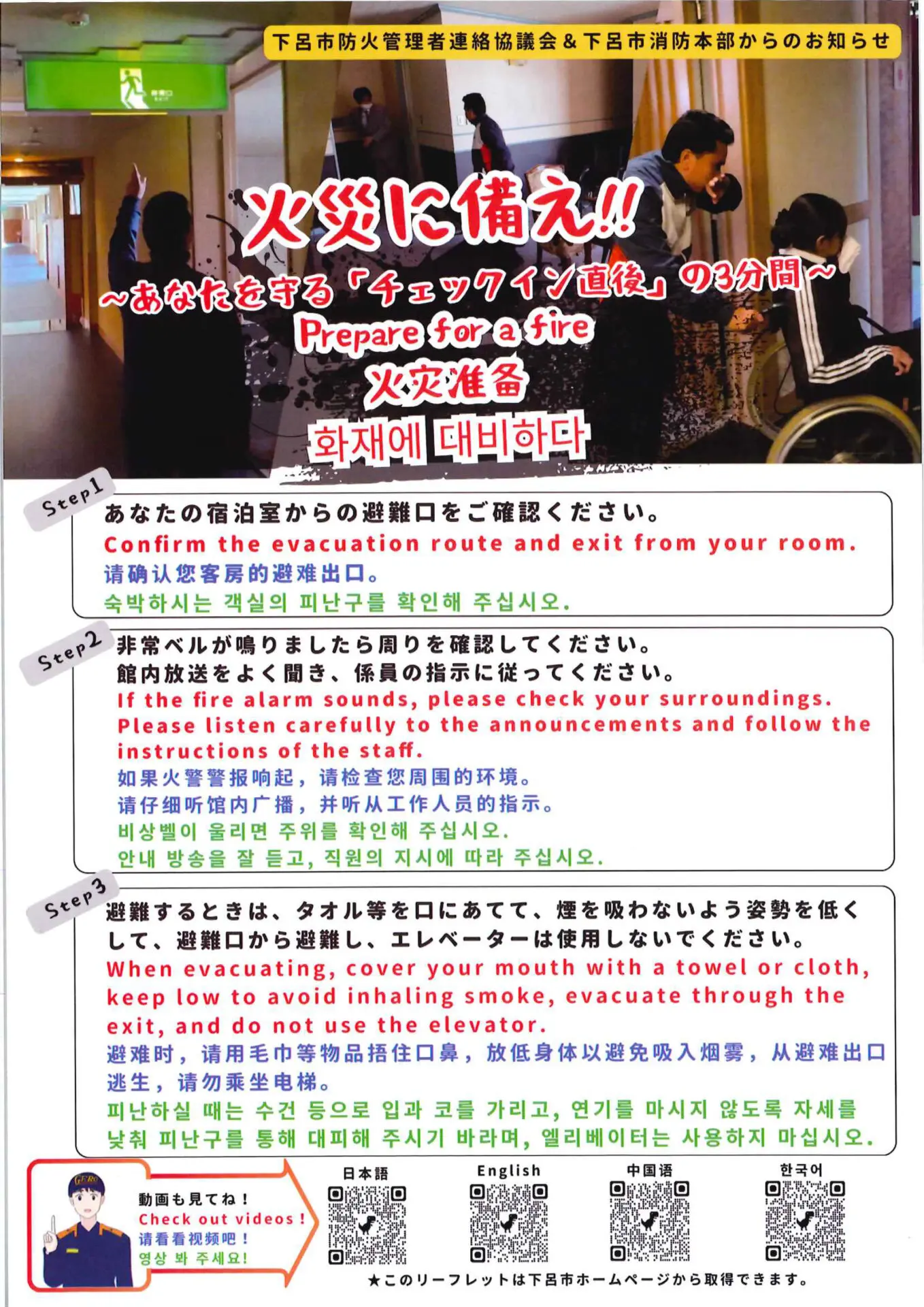 火災の際の避難誘導を下呂市消防署さんが作成してくれました。