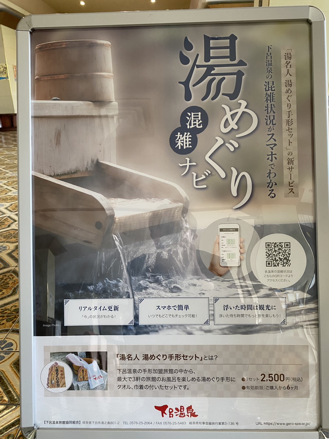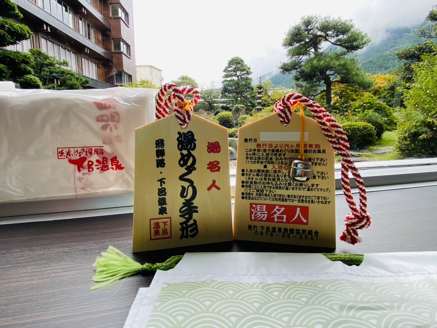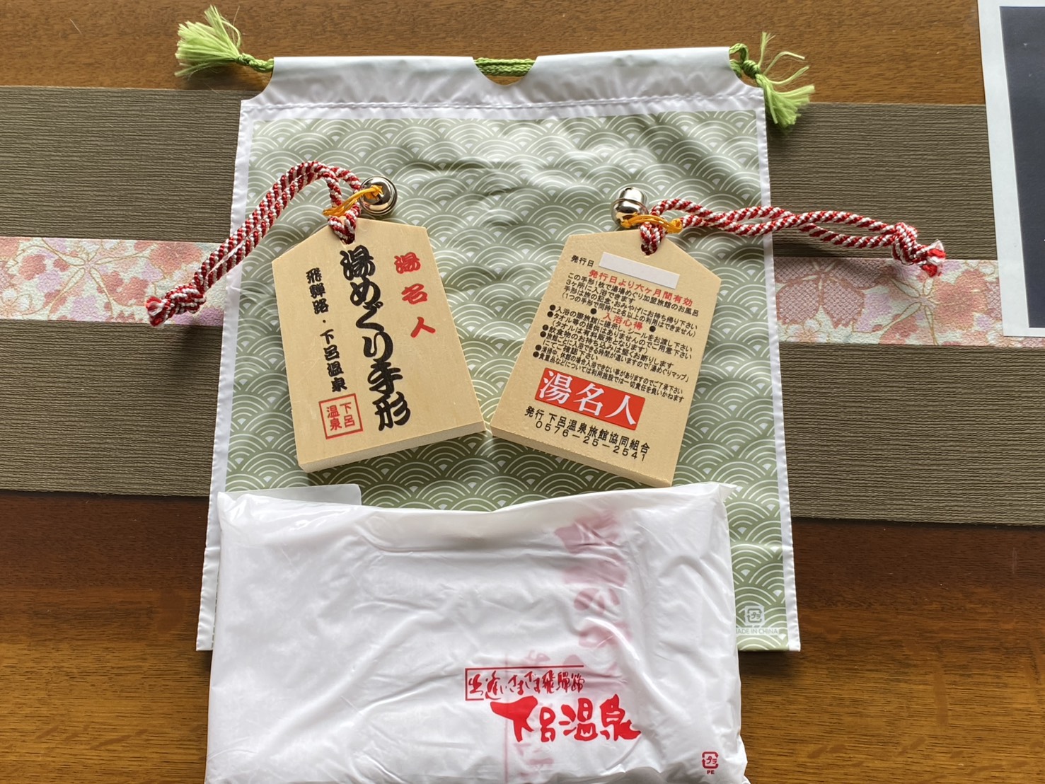 3施設入浴できる湯めぐり手形(半年間有効)と下呂温泉入浴タオル、そして巾着が付いて2,500円(税込)で販売致します。