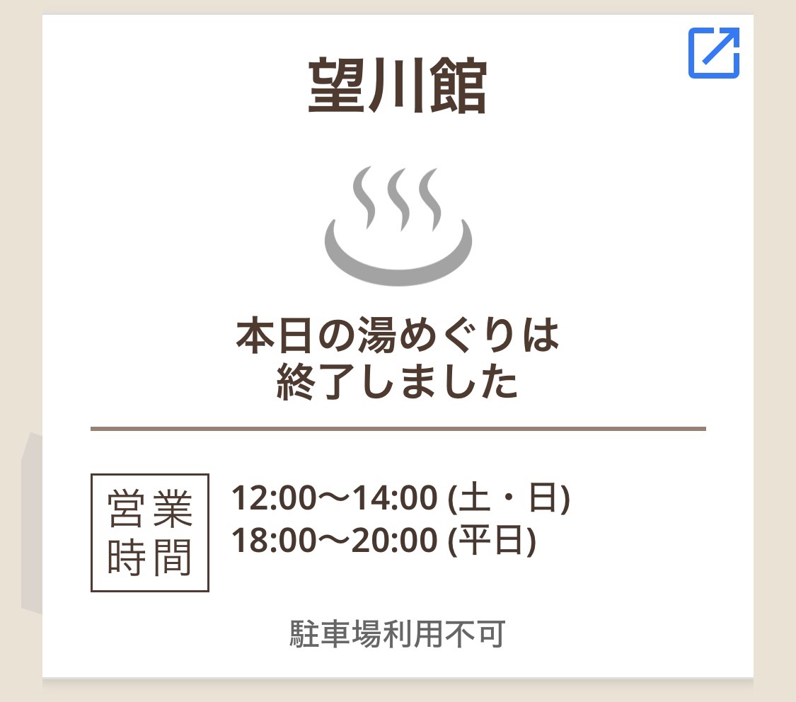 今の時間は弊社は掃除をしており、日帰り入浴はご案内してません。
