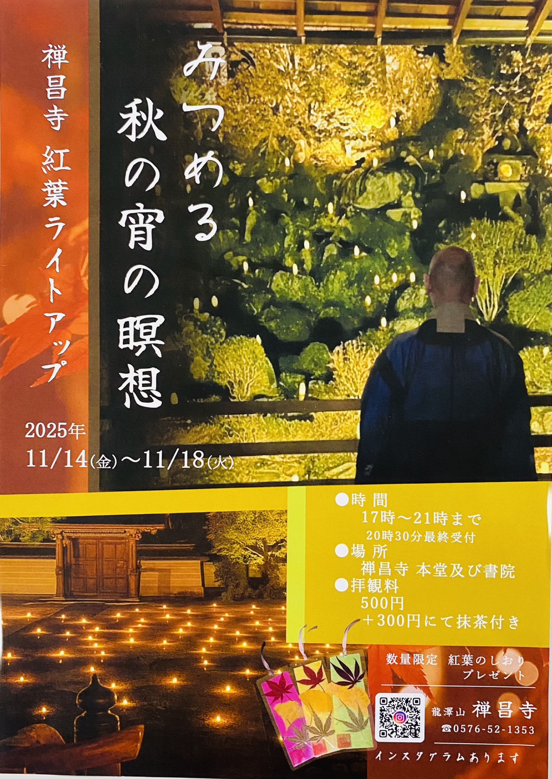 そんな今年の秋も開催します禅昌寺さんの紅葉ライトアップです。